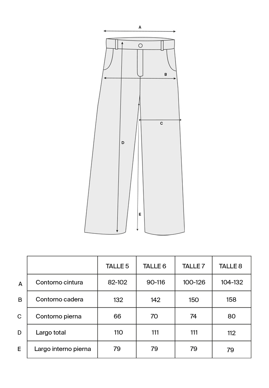De corte recto, simple, con cuatro bolsillos y elástico en cintura trasera. Súper cómodo y canchero.